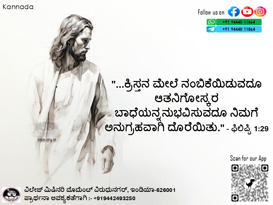"...ಕ್ರಿಸ್ತನ ಮೇಲೆ ನಂಬಿಕೆಯಿಡುವದೂ ಆತನಿಗೋಸ್ಕರ ಬಾಧೆಯನ್ನನುಭವಿಸುವದೂ… Read more